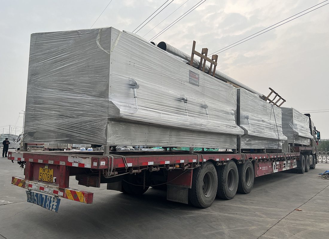任丘發貨除塵管道、烤池、80水箱、生物顆粒熱風爐、離心風機發貨