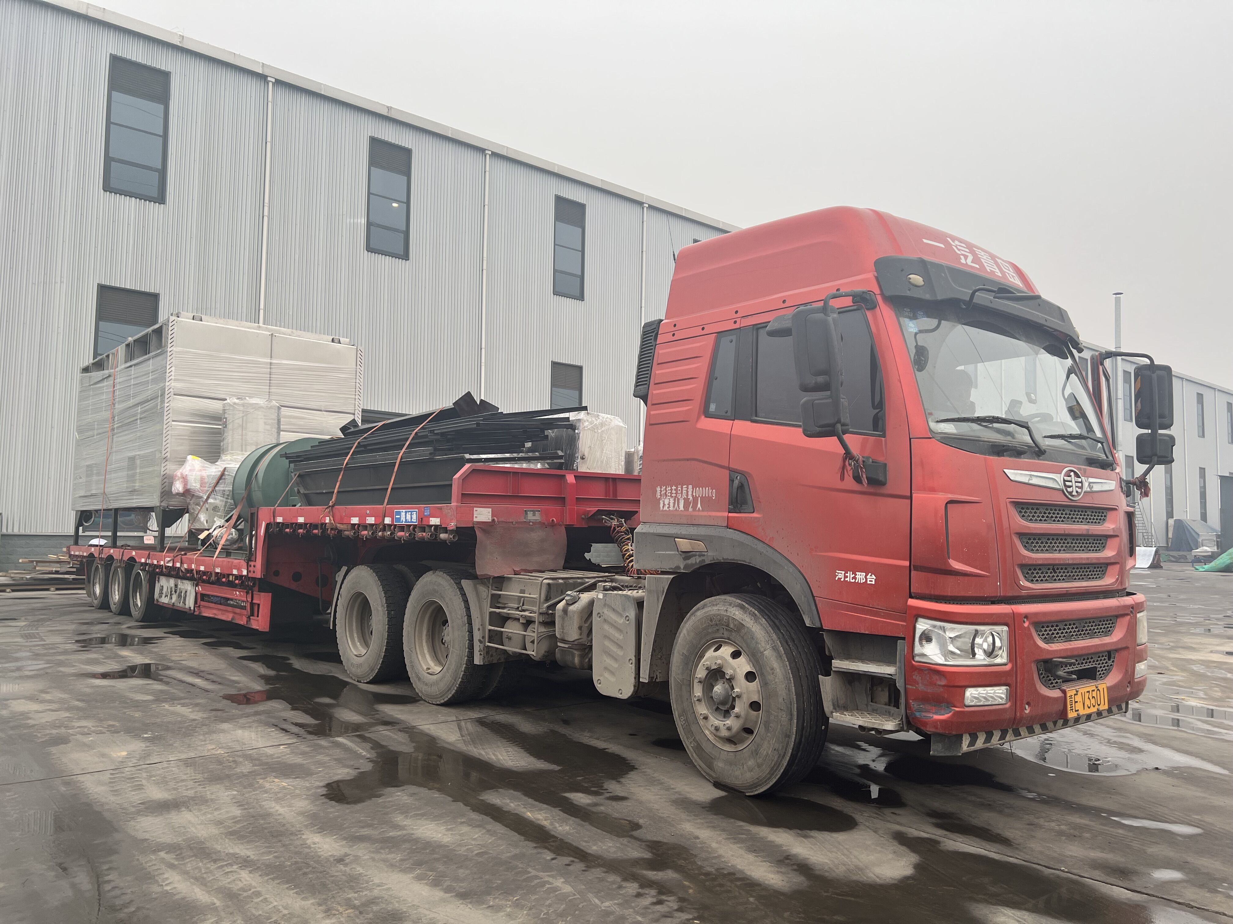 山東省荷澤市蜂窩鴛鴦烤池1臺,裙邊出料皮帶1臺,6號風機2臺,平面燃燒熱風爐(一拖二)1臺,操作平臺一套,風道一套發貨,