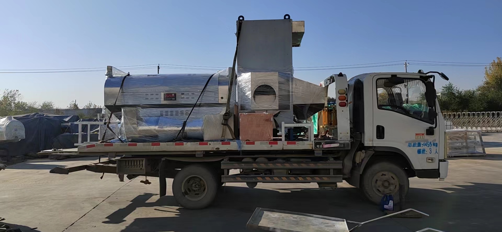 山東生物顆粒熱風爐左1臺,50螺旋除塵器1臺,2.2kw高溫風機1臺發貨
